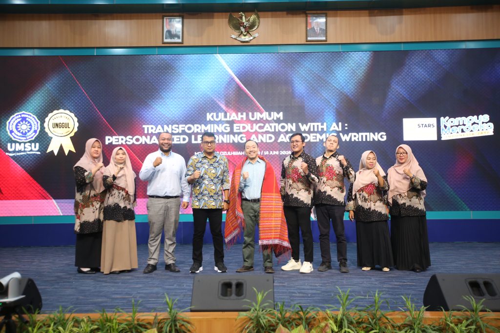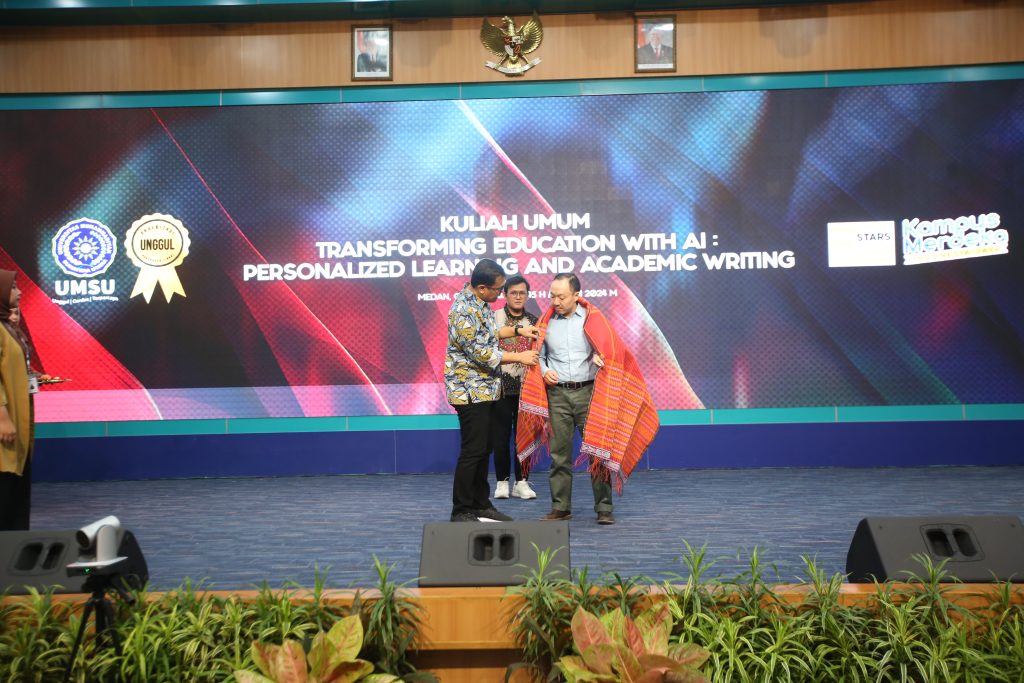 Universitas Muhammadiyah Sumatera Utara (UMSU) bersama Regional English Language Office (RELO) adakan kuliah umum tentang transformasi pendidikan di tengah penggunaan Artificial Intelligence (AI) yang dilaksanakan di Auditorium Kampus Utama UMSU, pada Jumat (14/06/2024).