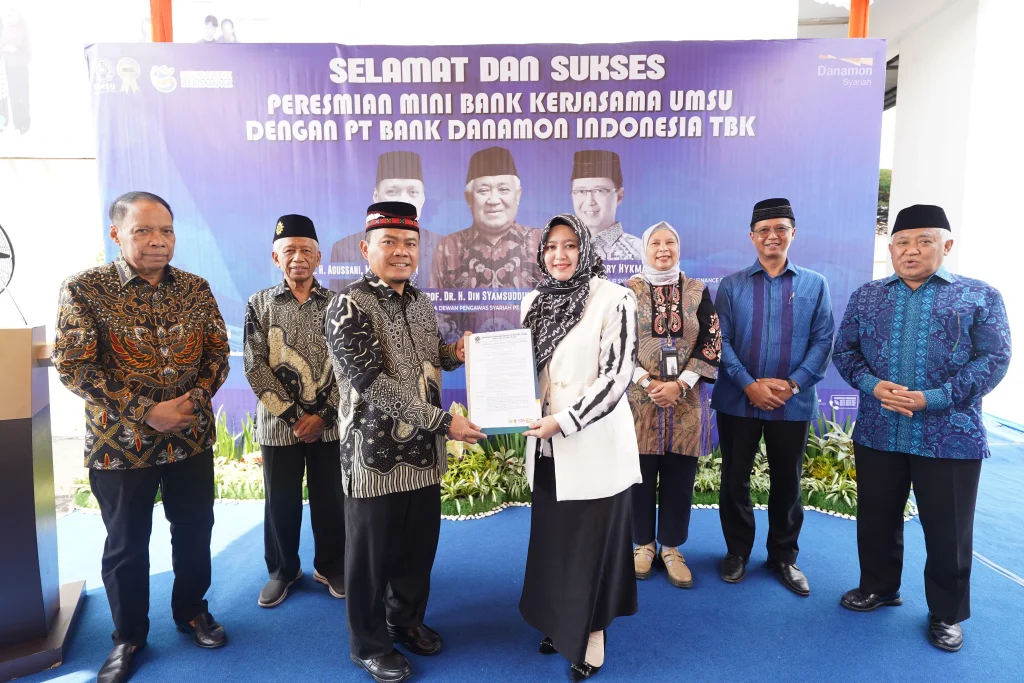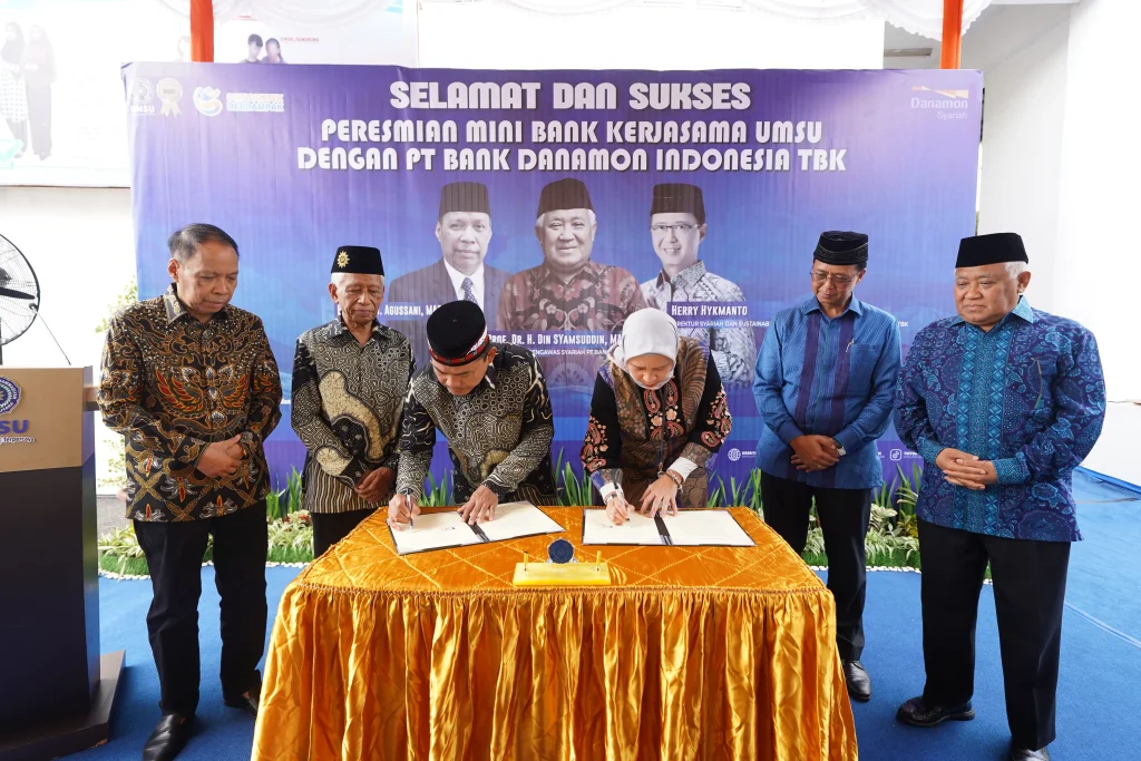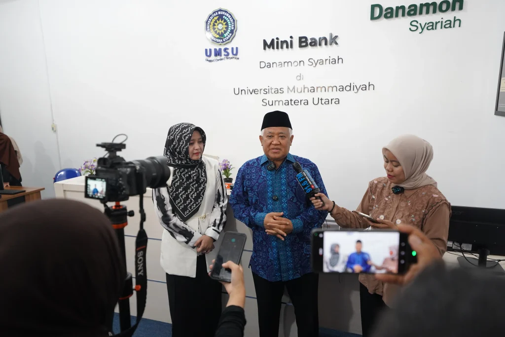 Ketua Dewan Pengawas Syariah PT Danamon Indonesia Prof. Dr. Din Syamsuddin, MA meresmikan Lab Bank Mini atas kerja sama UMSU dengan Danamon Syariah. Peresmian digelar di pelataran Fakultas Ekonomi dan Bisnis UMSU, Kota Medan, pada Kamis (07/08/2025).