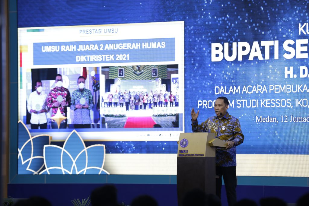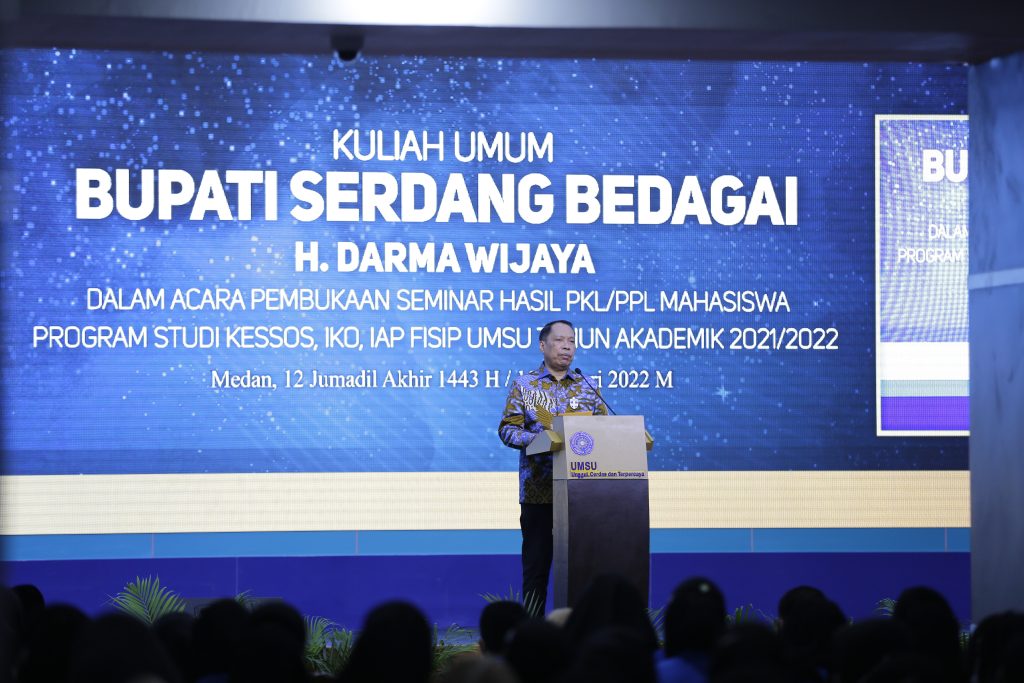 Bupati Serdang Bedagai (Sergai) H. Darma Wijaya didapuk untuk memberikan kuliah umum di kampus utama Universitas Muhammadiyah Sumatera Utara (UMSU), Medan, Sabtu (15/1/2022).
