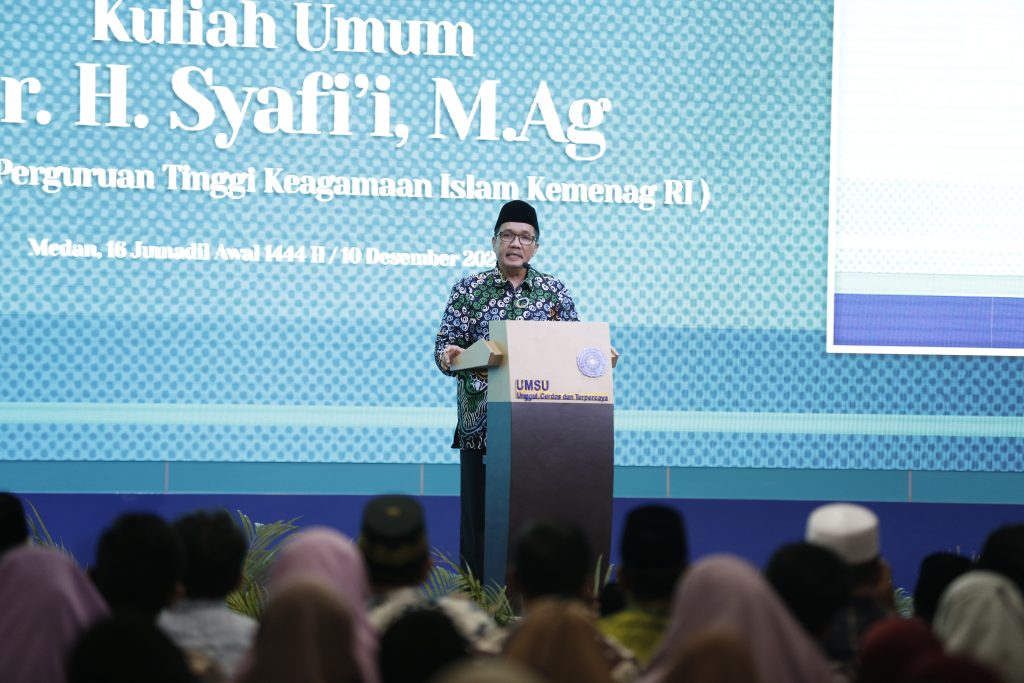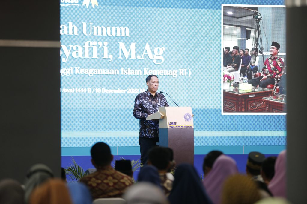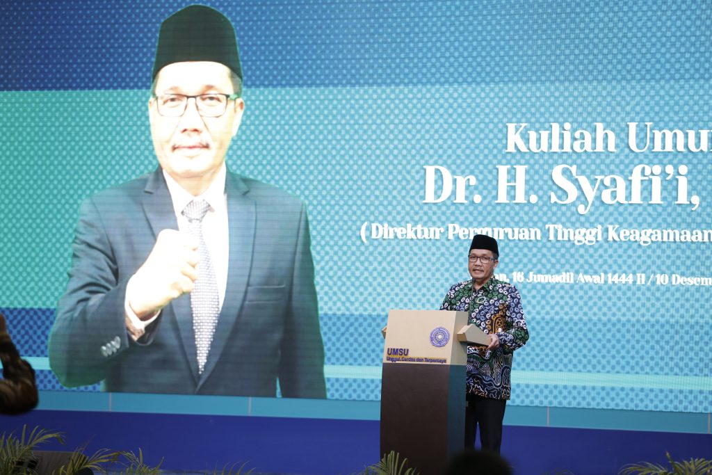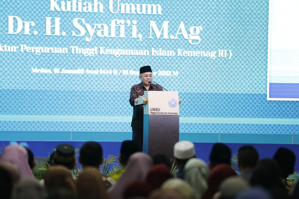 Universitas Muhammadiyah Sumatera Utara menyelenggarakan Kuliah Umum dengan tema “Peluang dan Tantangan Pendidikan Islam di Indonesia” dengan narasumber Bapak Dr. Syafi’i, M.Ag (Direktur Pendidikan Tinggi Keagamaan Islam di Indonesia) di Auditorium UMSU, Medan, Pada Senin (10/12/2022).