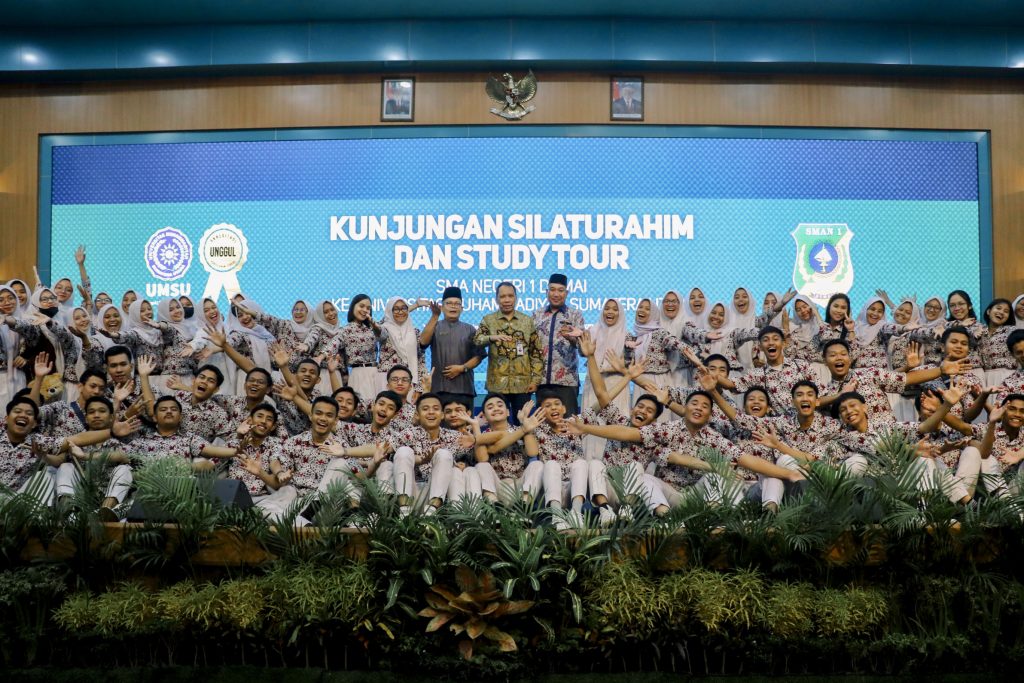 Sebanyak 91 Siswa kelas XII SMAN 1 Dumai terkesan dengan keberadaan kampus Universitas Muhammadiyah Sumatera Utara saat melakukan kunjungan “studi tour,” yang berlangsung di Auditorium Kampus Utama UMSU, pada Senin (20/12/2022).