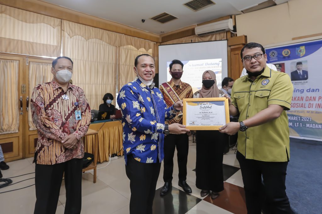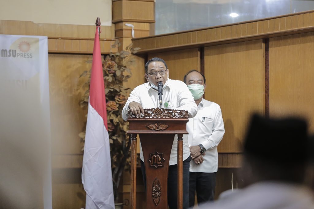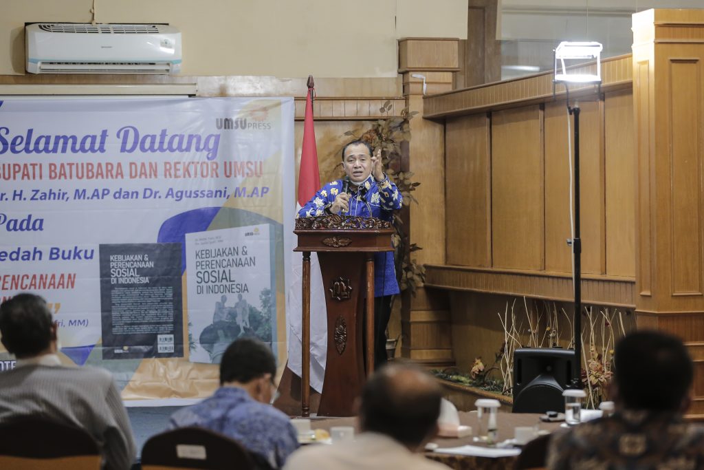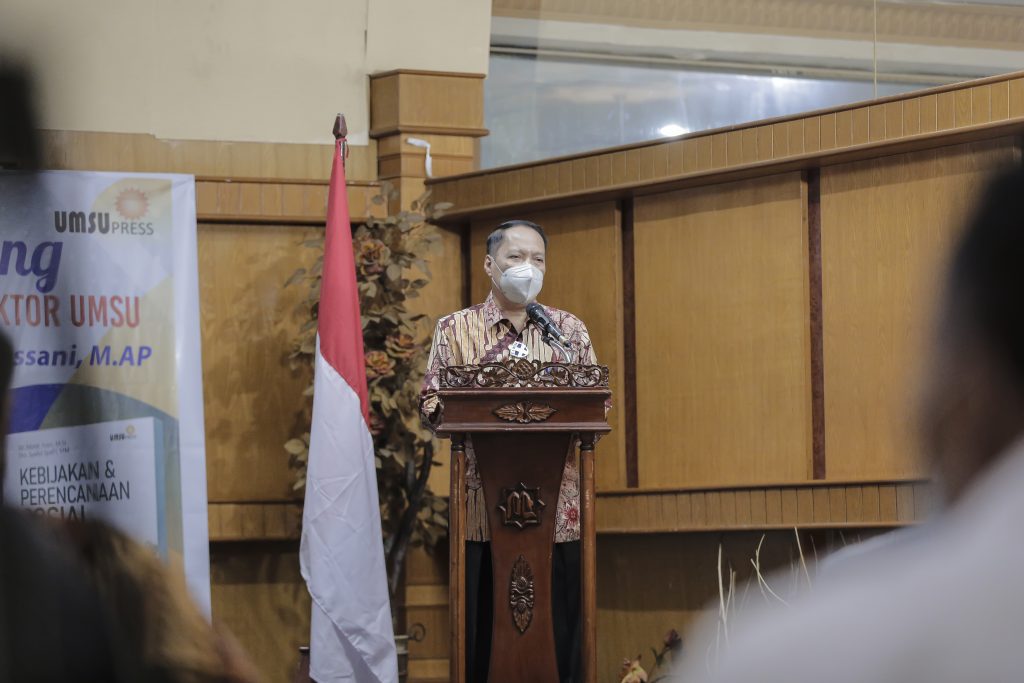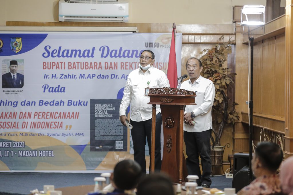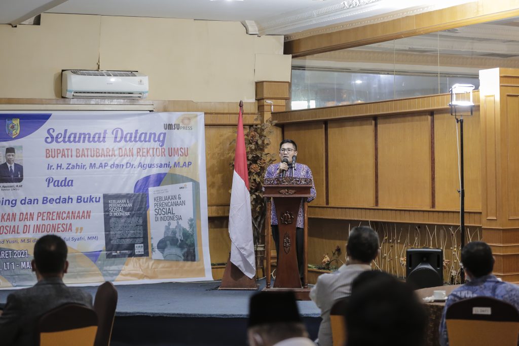 UMSU Press Launcing Bedah Buku “Kebijakan Dan Perencanaan Sosial di Indonesia” (karya: Dr. Mohd Yusri, M.Si dan Drs. Syaiful Syafri, MM), di Sisha Room Lantai 1 Madani Hotel, Medan, Sumatera Utara, Rabu (24/3/2021).