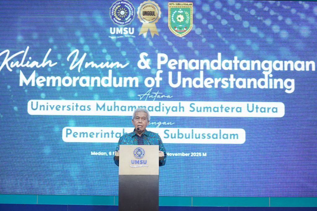 Pemerintah Kota (Pemko) Subulussalam Aceh gandeng Universitas Muhammadiyah Sumatera Utara (UMSU) jalin kerja sama pendidikan yang ditandai dengan penandatanganan naskah MoU di Auditorium Kampus Jalan Muchtar Basri No.3 Medan, Rabu (26/11/2025).