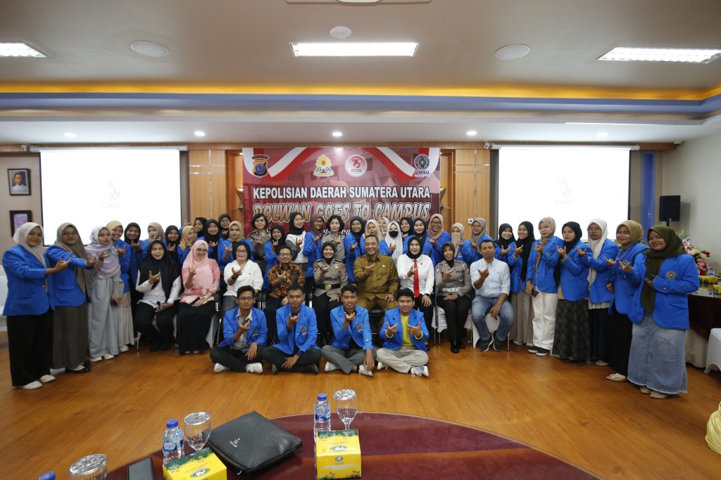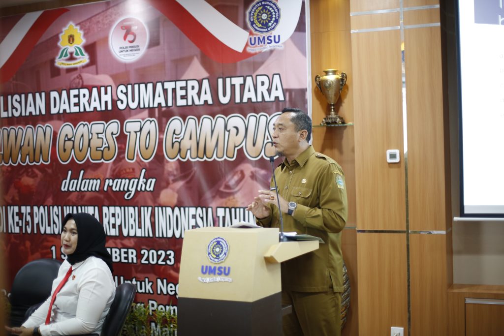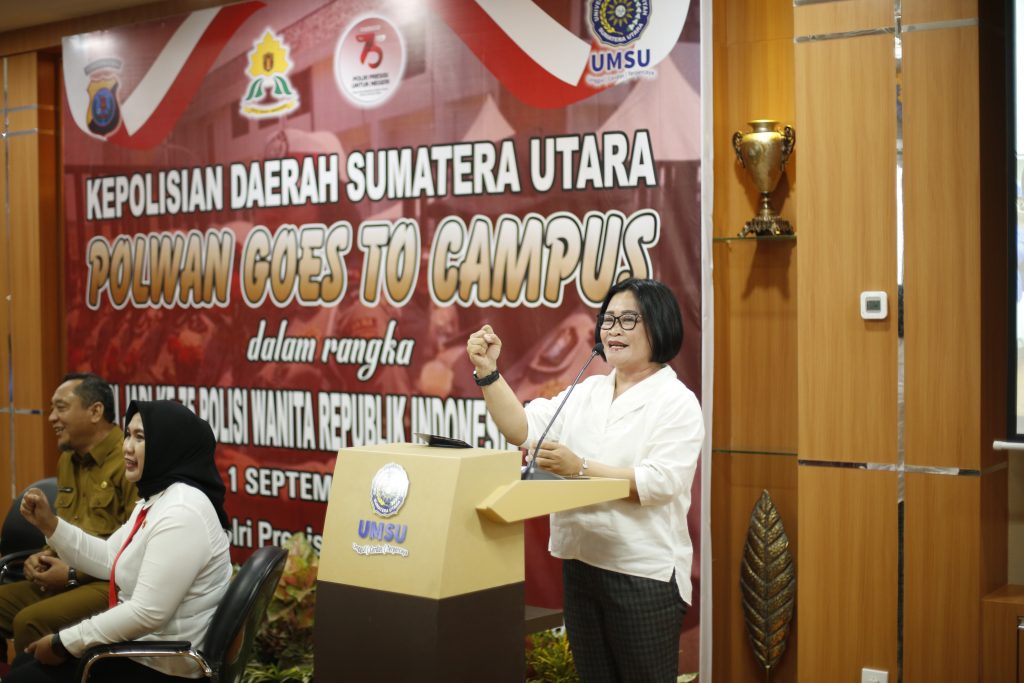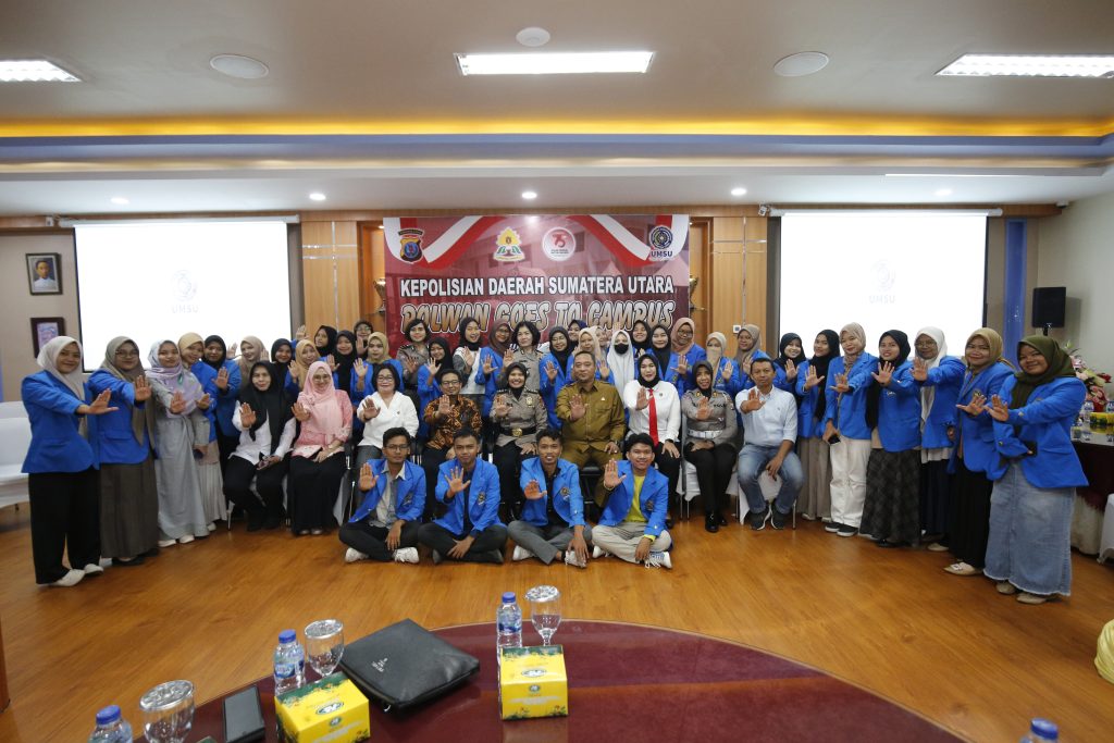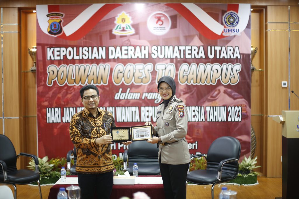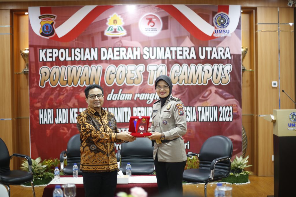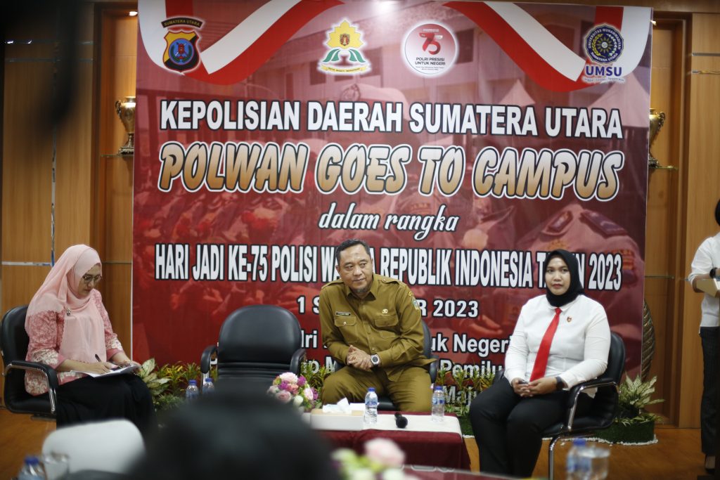 Kepolisian Daerah Sumatera Utara menggelar “Polwan Goes to Campus” di Universitas Muhammadiyah Sumatera Utara (UMSU) sebagai rangkaian Peringatan Hari Jadi ke 75 tahun satuan polisi wanita. Kegiatan ini dibuka langsung oleh Rektor, Prof. Dr. Agussani, MAP diwakili Wakil Rektor UMSU Prof. Dr. Akrim, M.Pd, pada Senin (07/8/2023) di ruang VIP Kampus Utama UMSU, Medan.