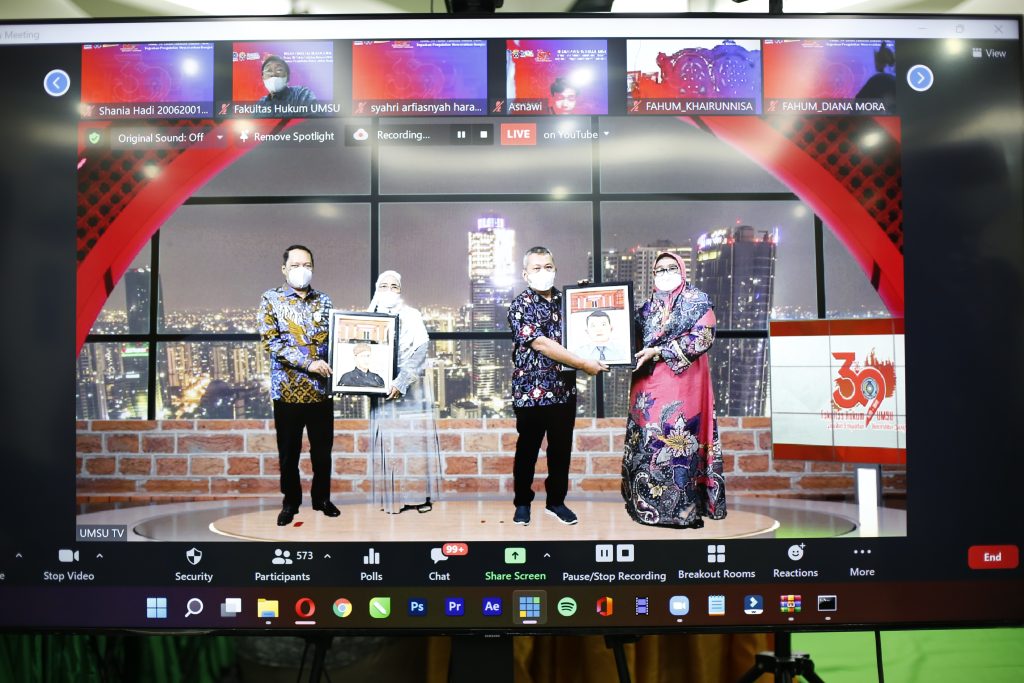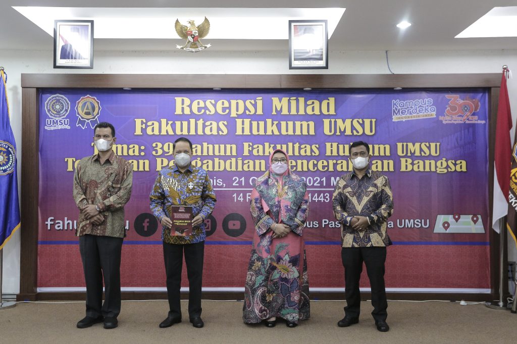 Pada resepsi milad ke-39 ini Fakultas Hukum UMSU mengambil tema: 39 Tahun Fakultas Hukum UMSU Tegaskan Pengabdian Mencerahkan Bangsa. Kegiatan ini dilaksanakan secara daring dan luring dimana pada pada luring dihadiri oleh keluarga mantan pimpinan fakultas pimpinan fakultas saat ini Universitas pada kegiatan daring dihadiri dari mahasiswa alumni dan dosen Fakultas Hukum UMSU serta dihadiri oleh beberapa pimpinan fakultas yang ada di Universitas Muhammadiyah Sumatera Utara, Pada Kamis (21/10/2021).