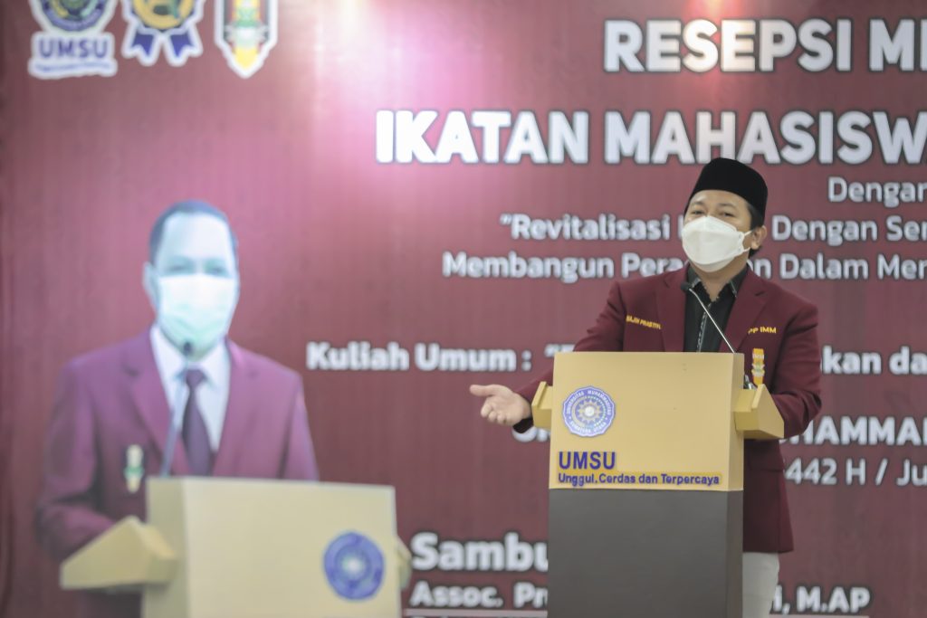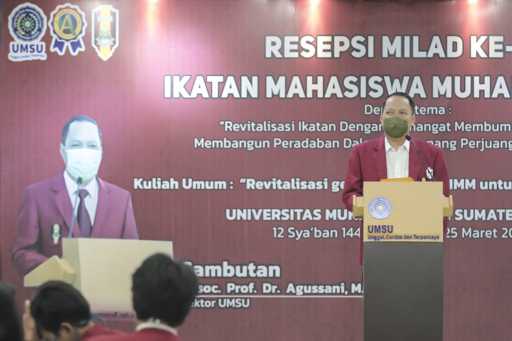 Resepsi Milad ke-57 Ikatan Mahasiswa Muhammadiyah (IMM) UMSU yang bertema “Revitalisasi ikatan dengan semangat membumikan gagasan membangun peradaban dalam mengenang Perjuangan 57 Tahun IMM”, yang dilaksanakan langsung di Kampus Utama UMSU, Medan, Jumat (26/3/2021).