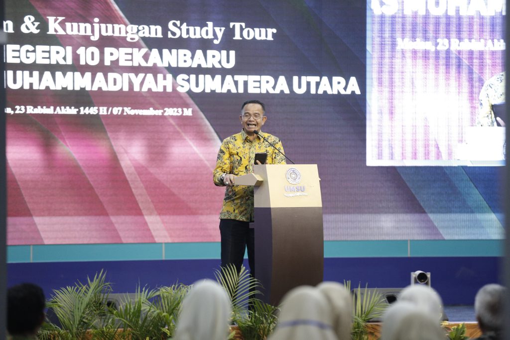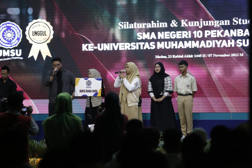 Sebanyak 300 siswa kelas XII SMA Negeri 10 Pekanbaru melakukan kunjungan studi ke kampus Universitas Muhammadiyah Sumatera Utara di Jalan Kapten M. Basri, Medan, pada Selasa (07/11/2023).