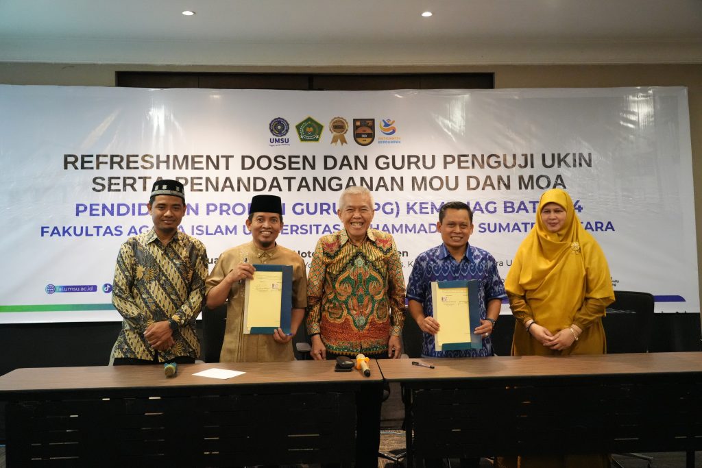 Refreshment Dosen dan Guru Penguji Ukin Serta Penandatanganan MoU dan MoA Pendidikan Profesi Guru (PPG) Kemenag Batch 4 yang dilaksanakan Fakultas Agama Islam Universitas Muhammadiyah Sumatera Utara, pada Sabtu (14/2/2026) di Hotel Emerald Garden Medan.