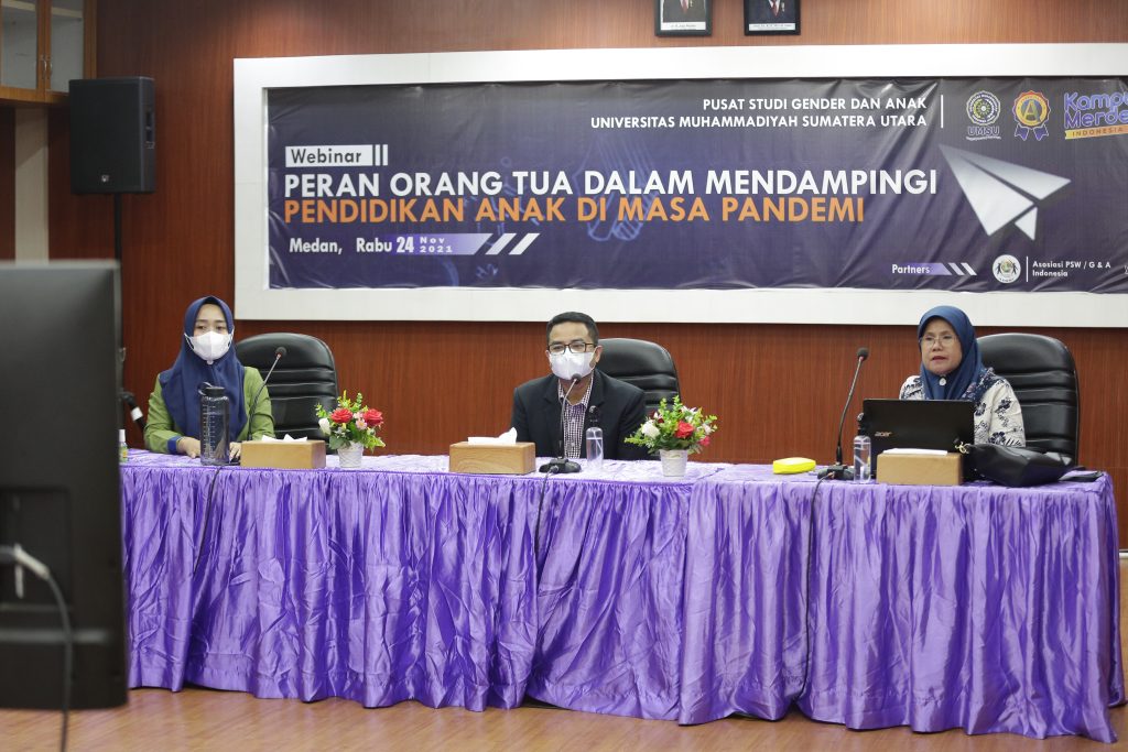 24 november 2021 Pusat Studi Gender dan Anak (PSGA) Universitas Muhammadiyah Sumatera Utara (UMSU) gelar webinar dengan tema ‘Peran Orangtua dalam Mandampingi Pendidikan Anak di Masa Pandemi’. Dilaksanakan secara daring, Rabu (24/11/2021). Kegiatan ini menjawab keresahan orangtua dalam mendidik anak-anaknya di masa pandemi Covid-19.