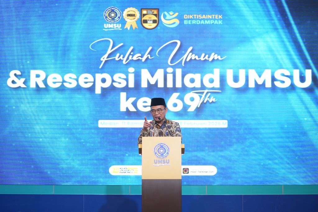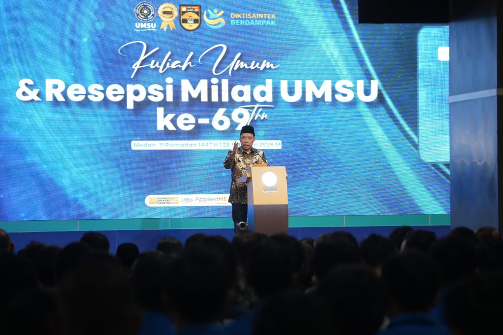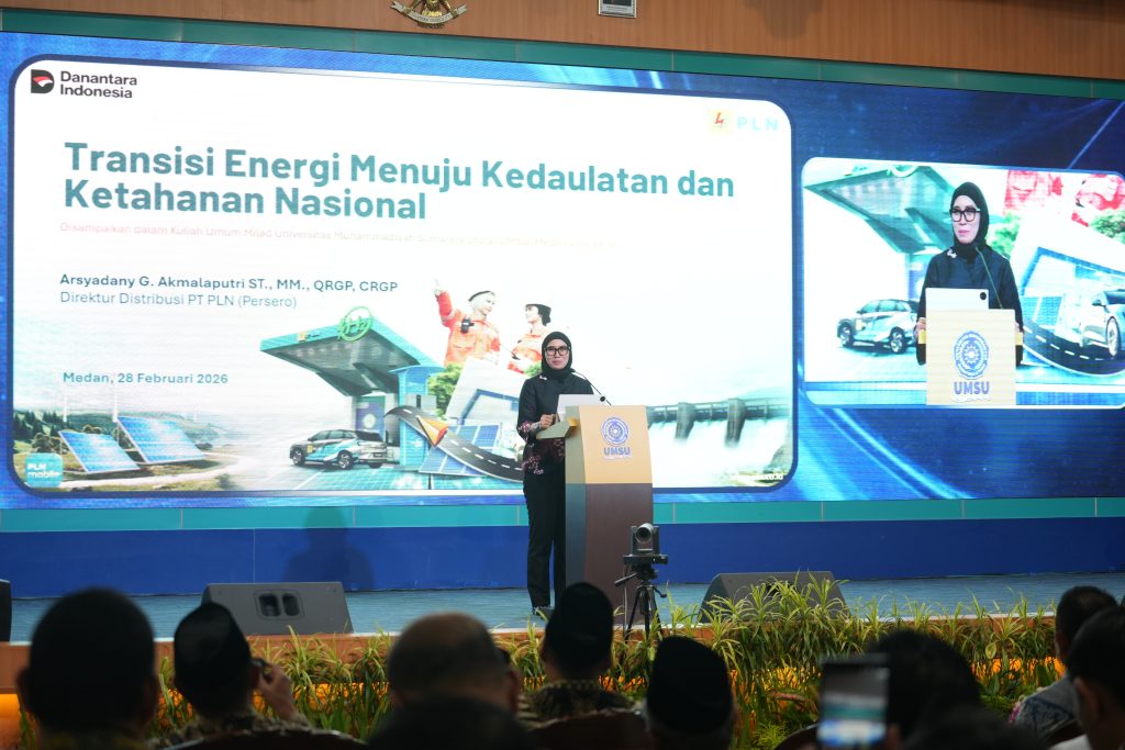 Universitas Muhammadiyah Sumatera Utara (UMSU) menggelar resepsi Milad ke-69 dan kuliah umum bersama Direktur Distribusi  PT PLN Arsyadany Ghana Akmalaputri, ST., M.M bertajuk “Transisi Energi Menuju Kedaulatan dan Ketahanan Nasional”  di Auditorium Kampus Jalan Muchtar Basri No.3 Medan, pada Sabtu (28/2/2026).